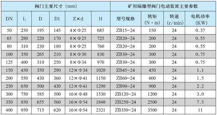三、礦用本安型防爆電動(dòng)球閥技術(shù)參數(shù)