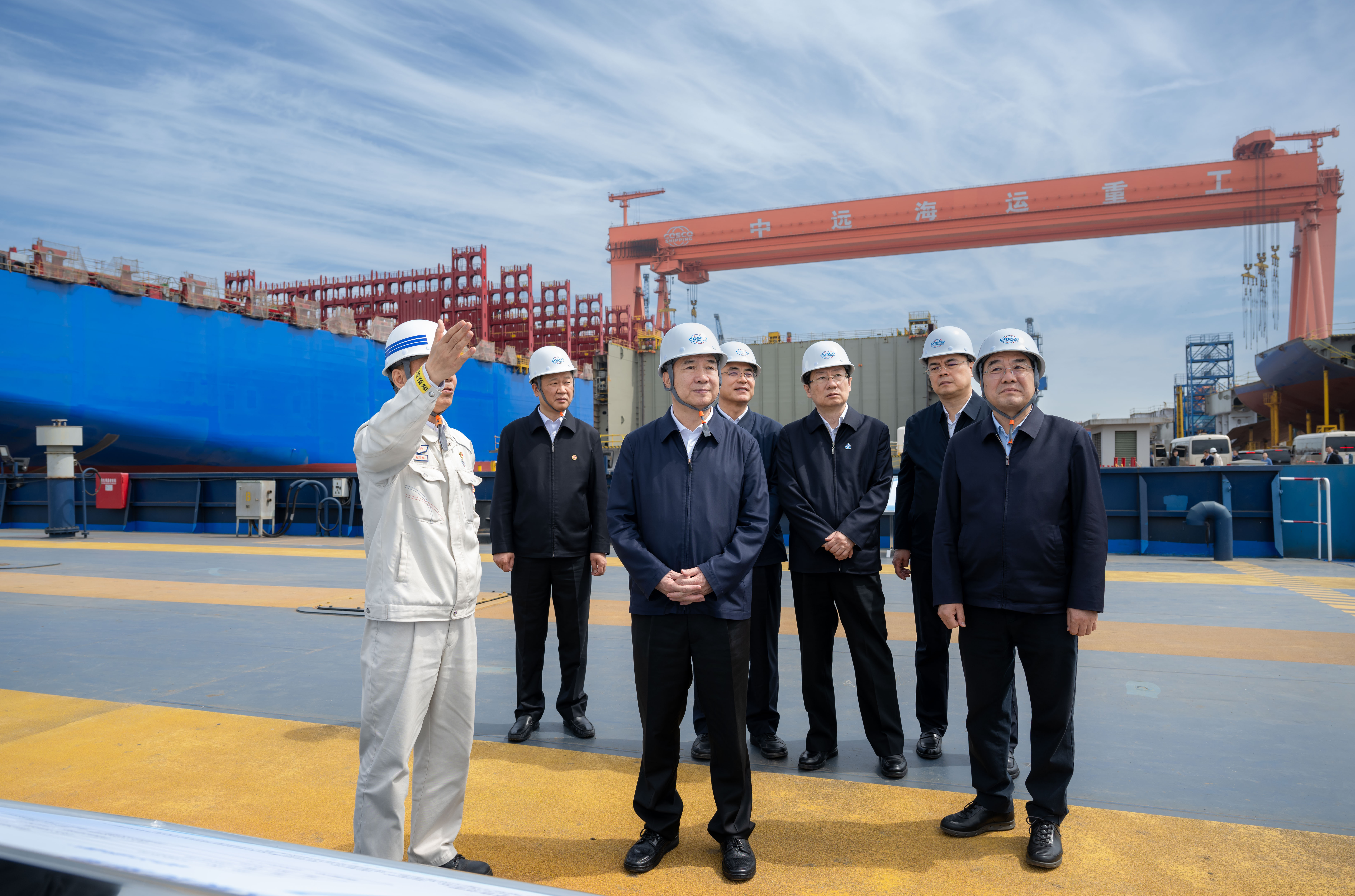4月22日至25日,中共中央政治局常委、中央紀委書記李希到江蘇調研。這是4月24日,李希在揚州中遠海運重工有限公司調研。新華社記者 翟健嵐 攝